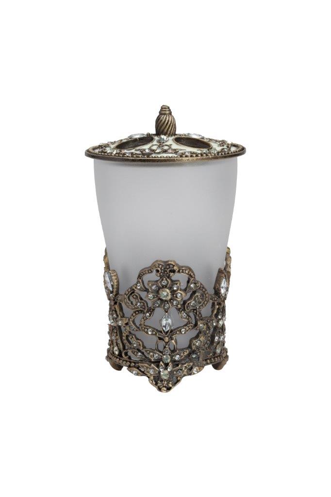 Подставка для зубных щёток Isolde изготовлена из матового стекла, помещена в подстаканник из металлических кружев, на металлической крышке — удобная ручка и четыре отверстия для щёток, которые выгодно дополняют общий дизайн подставки. Изготовлена из совершенно безопасных натуральных материалов, подойдёт к любому стилю интерьера. Непременно приобретите её вместе с другими предметами коллекции Aarushi для вашей ванной комнаты. Такой набор, несомненно, станет и шикарным подарком.