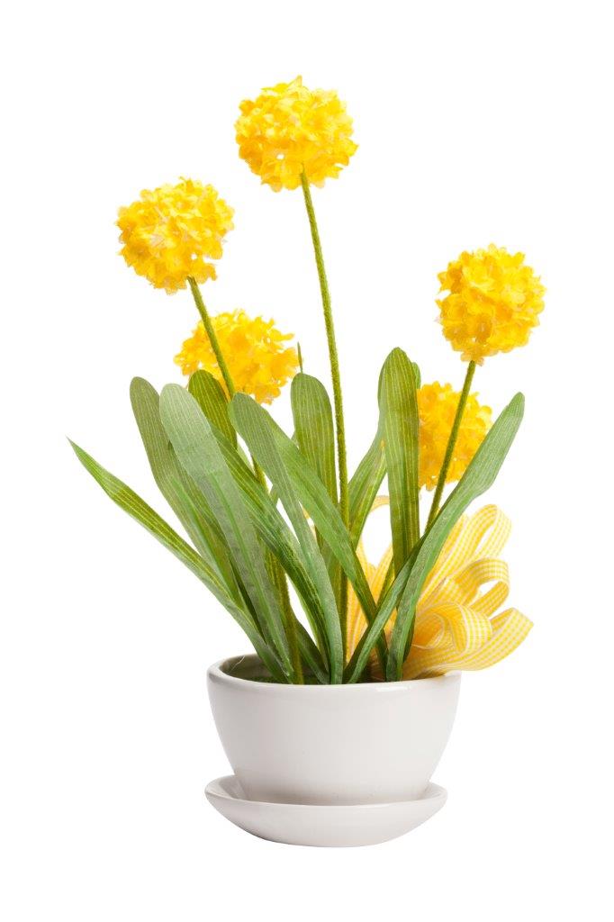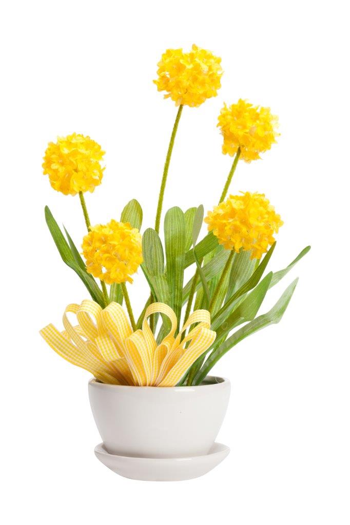 Декоративный цветок Parsel является изящным предметом декора и подойдёт к любому стилю интерьера. Композиция состоит из шелкового цветка жёлтого цвета с зелёными листьями и белого керамического горшка с поддоном. Декоративный цветок рассчитан на длительный срок использования.