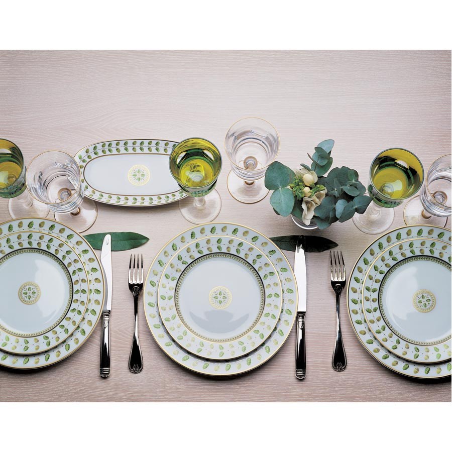 Комплект тарелок Flober выполнен из костяного фарфора. Край тарелки украшен цветочным орнаментом в зеленом цвете. По центру тарелки на белом фоне, изображён символический цветок, окружённый орнаментом. Минималистичная цветовая гамма придаёт тарелкам элегантность. Комплект тарелок легко можно сочетать с другими предметами данной коллекции, которые украсят ваш стол. В комплект входят две тарелки диаметром 25,5 и 20 см.