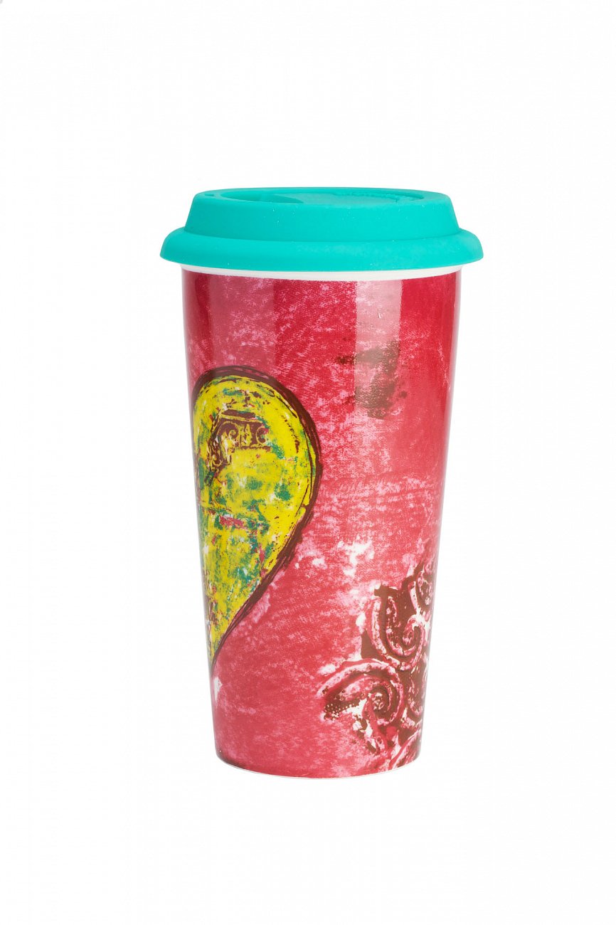 Термостакан Heart — это высокий керамический стакан с плотно прилегающей силиконовой крышкой. Двойные стенки сохранят тепло напитка, не обжигая при этом ваши руки, а холодные напитки в таком стакане долго не нагреваются. Плотно закрывающаяся силиконовая крышка не позволит пролиться любимому напитку во время ходьбы или движения на автомобиле стакан отлично подходит под держатель, а веселый и яркий дизайн будет поднимать вам настроение при каждом использовании. Можно использовать в микроволновке и мыть в посудомоечной машине. Силикон выдерживает температуру до 230 °C. Термостакан Heart станет замечательным и оригинальным подарком!