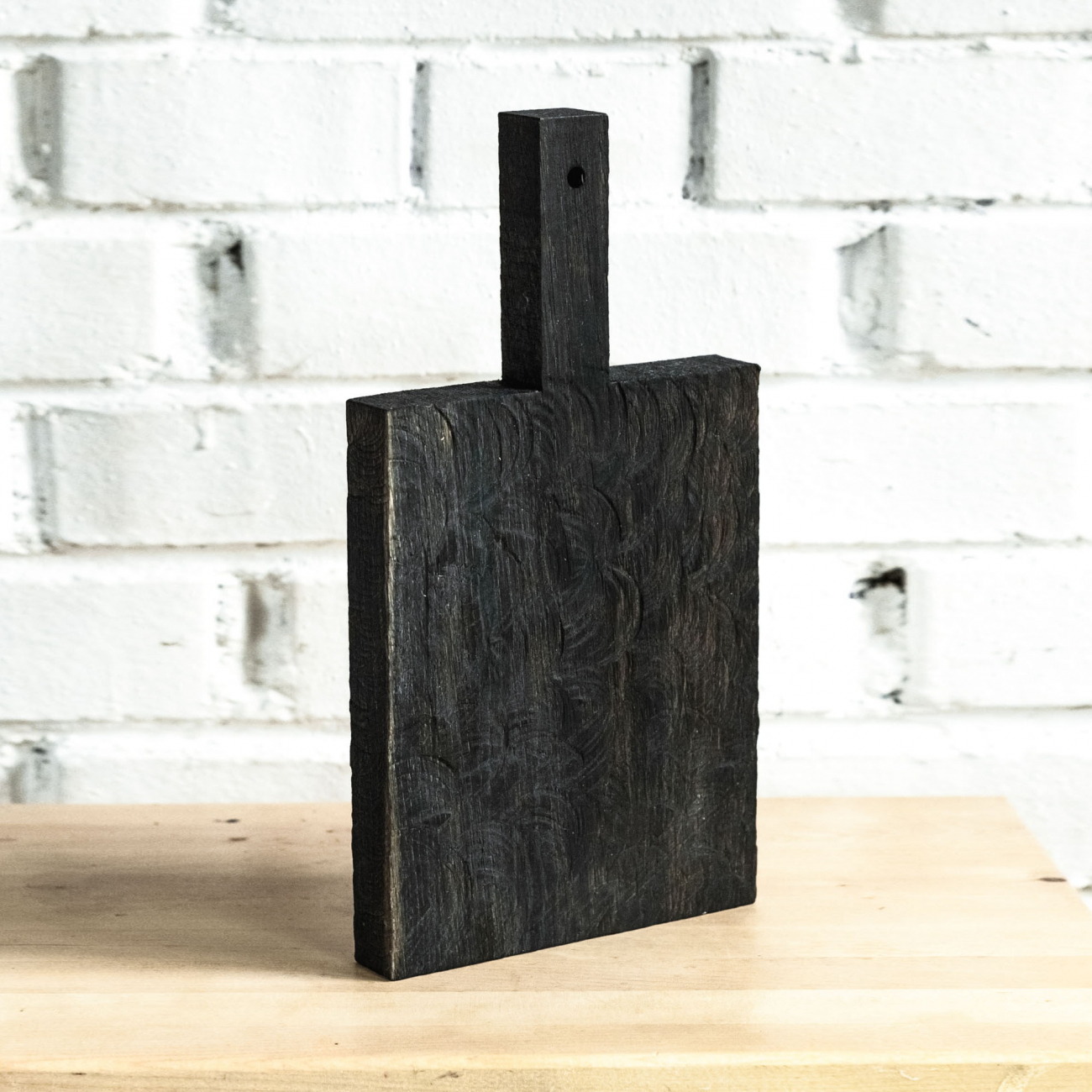 Сделана вручную. Покрытие: льняное масло. У доски есть две поверхности: декоративная с нанесенной на нее фактурой и рабочая, гладкая. Её можно использовать как разделочную, сервировочную доску для подачи или предмет декора интерьера. Из-за специфики ручного труда все предметы отличаются друг от друга. После влажной обработки доску нужно протирать полотенцем. При необходимости можно обновлять покрытие, протерев поверхность доски тряпочкой, смоченной льняным маслом.