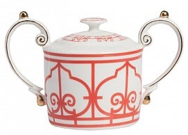 Выполненная из белоснежной керамики сахарница Skarletti с двумя большими ручками по всей поверхности декорирована красным геометрическим орнаментом в современном стиле. Сахарницу можно приобрести как отдельно, так и в дополнение к другим предметам этой же коллекции.