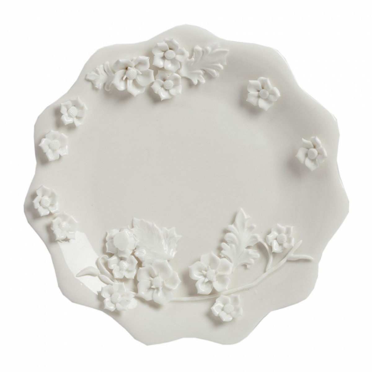 Выполненная из грубой керамики большая тарелка Blume в стиле Прованс диаметром 30 см, декорированная изящной цветочной лепниной, предающая ей особую элегантность. Благодаря этому тарелка может стать самостоятельным элементом интерьера кухни или столовой и украсит любой интерьер.
