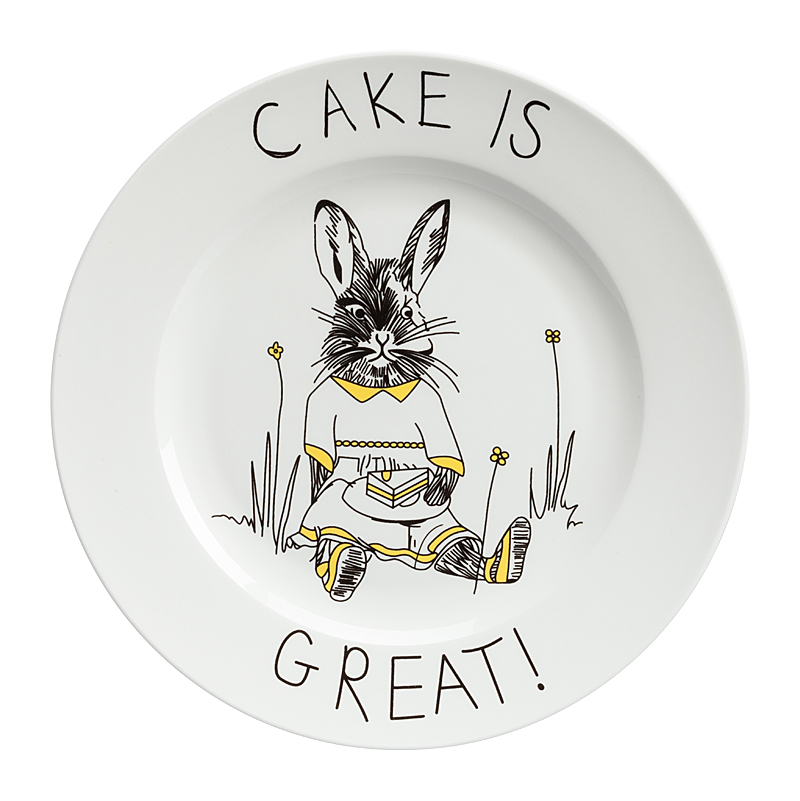 Смешная тарелка с рисунком очаровательного кролика и надписью Cake is Great «торт велик» — отменное пополнение вашей коллекции интересной кухонной утвари. Она пригодна для повседневного использования и абсолютна незаменима для поднятия своего настроения и впечатления гостей. Эта тарелка станет забавным и необычным подарком на день рождения или любой другой случай, замечательным способом поднять настроение хмурым утром! Вы можете купить тарелку в подарок своим друзьям и коллегам, а можете — их детям. И те и другие будут довольны, ведь их завтраки и ужины навсегда перестанут быть скучными! Спешите купить яркую, позитивную тарелку Cake is Great и другие смешные тарелки из этой коллекции!
