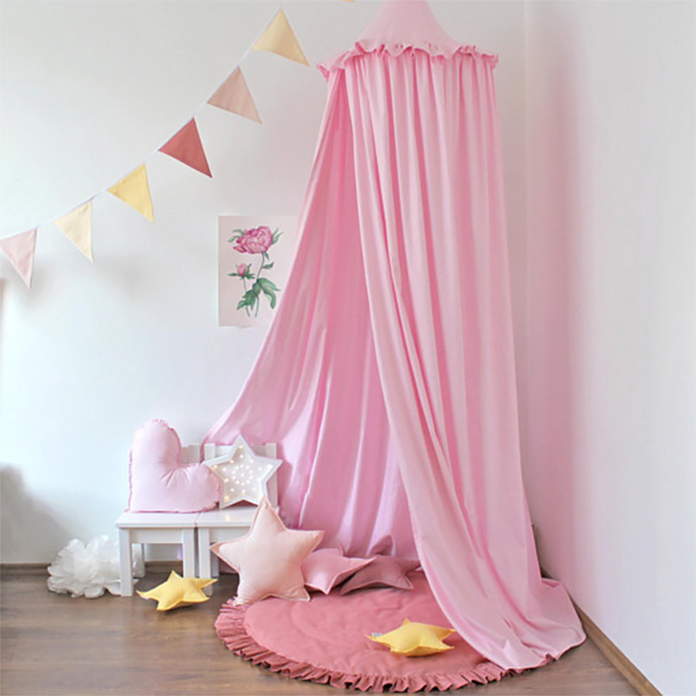 Закрепите его на своем потолке, поместите под него большую подушку для подушки и несколько кукол, чтобы Тканевые балдахины в детской всегда выглядили очень уютно и нежно.
