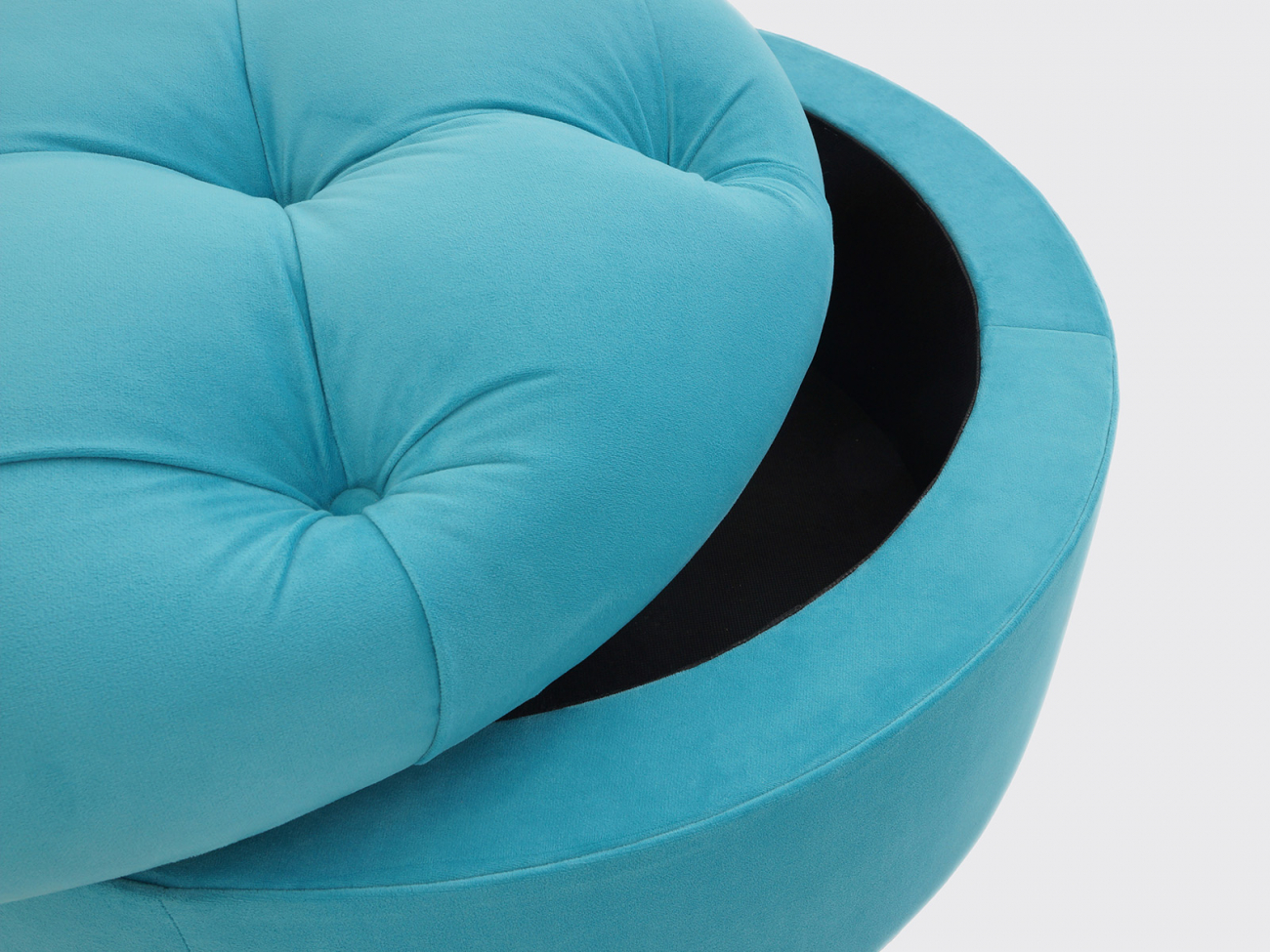 Пуф с емкостью для хранения, декорированный пуговицами.