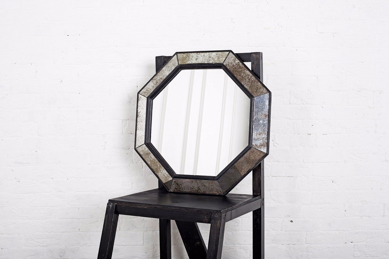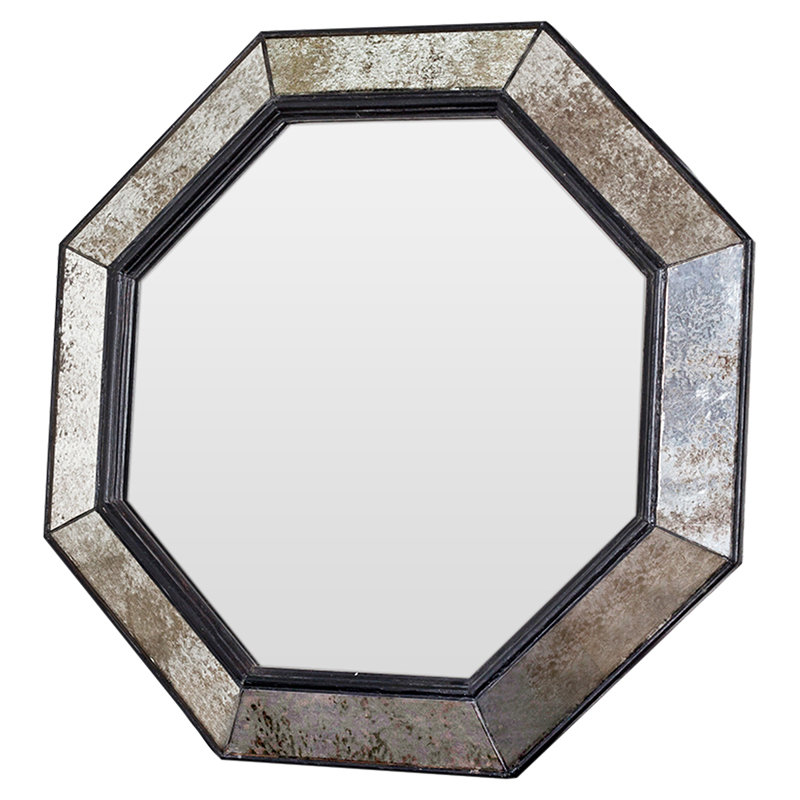 Зеркало венецианское восьмиугольное черное в состаренной раме Black Swan